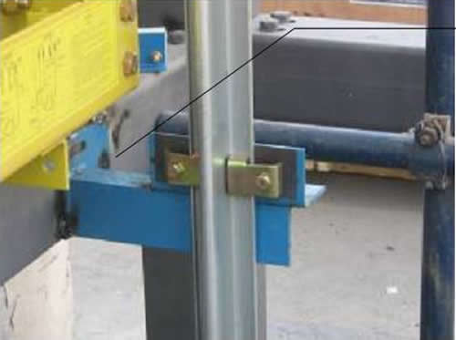 導軌校正好后,將導軌支架可調部分點焊固定,另將支架膨脹螺栓的平墊與支架進行點焊,導軌在頂層和底坑的呆滯段用黃漆涂刷(電梯沖頂或蹲底都不會使用的導軌段稱為呆滯段)