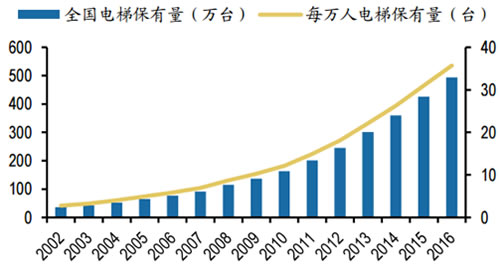 20世紀90年代后期,我國電梯職業(yè)進入快速開展階段,特別從2004年開端,電梯職業(yè)銷量高速添加,電梯保有量也隨之敏捷添加,到2016年末國內(nèi)電梯保有量已達467.41萬臺。我國電梯職業(yè)的開展正由制作業(yè)向維保效勞業(yè)改變,電梯這個產(chǎn)品跟著它的老齡化和使用數(shù)量的進步,人民群眾關于乘運質(zhì)量要求的進步,維保的工作量將逐步成為電梯職業(yè)開展重要的方向,再經(jīng)過幾年的運營,我國電梯職業(yè)十分有可能會變成以維保業(yè)為主業(yè)、制作業(yè)為輔的一個職業(yè),我國電梯職業(yè)開展的空間很大,特別是裝置、維保、效勞的空間更是巨大的。