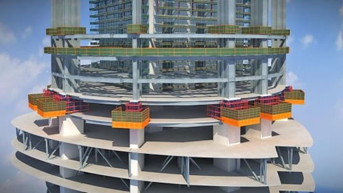 據(jù)了解上海中心大廈的電梯井壁為1.2米厚現(xiàn)澆墻,通過建立的上海中心的詳細結(jié)構模型,進一步考慮外框架以及伸臂桁架等構件對電梯井的增強作用。