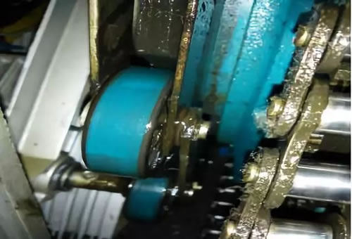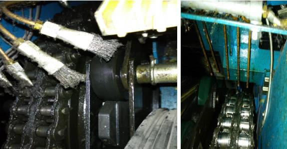 加油毛刷安裝到位,將油加到鏈片連接處。