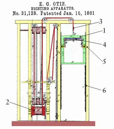 用鋼絞線制造電纜不能保證100%的安全。所以?shī)W蒂斯電梯(奧的斯——設(shè)計(jì)它的人)有一個(gè)棘輪系統(tǒng)作為后備。每輛車在兩條豎直的導(dǎo)軌之間行駛,兩條豎直的導(dǎo)軌的齒很結(jié)實(shí),一直到頂部。如果電纜斷裂,一個(gè)帶有鉤子的彈簧加載機(jī)構(gòu)在外面跳躍,與金屬齒相嚙合。所以現(xiàn)在你被困在地板之間,但你是安全的。這些機(jī)構(gòu)被用于奧的斯電梯,現(xiàn)在只有少數(shù)人擁有它