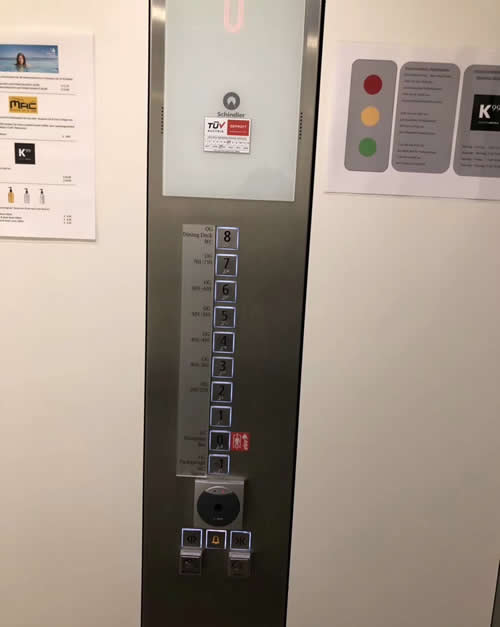 記得很多年前在北京有很多人參加的會議上,會議進行到提問環(huán)節(jié)有人問我無機房電梯是否能做消防員電梯的問題,我的回答是可以的,但我的回答不是提問者所要的答案,后提問人懷疑我的答案并且陷入了沉默。今天我給大家拍了我住的酒店的無機房消防員電梯的照片。大家可以清晰地看到帶耐火門、設(shè)置煙霧感應器和消防栓的前室,轎頂是可以打開逃生的,操作盤有清晰的標識,轎壁貼有逃生路線等。選擇無機房電梯作為消防員電梯是沒有問題的,和其它一樣,載重和速度才是要考慮的問題。(圖/文:中國電梯協(xié)會秘書長張樂祥)