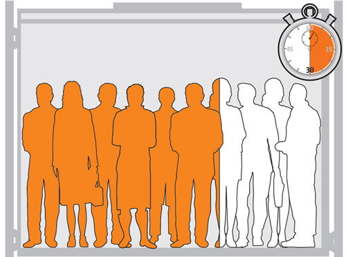 如果乘坐電梯的平均時間是30秒,66%的人每天在電梯里花費(fèi)3850萬小時保持沉默