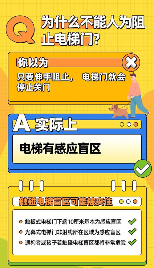 2. **注意小孩和寵物**:特別要小心小孩和寵物的行為,因?yàn)樗麄兛赡懿涣私怆娞蓍T(mén)的危險(xiǎn)區(qū)域。確保他們遠(yuǎn)離電梯門(mén)的感應(yīng)盲區(qū),以免發(fā)生危險(xiǎn)。