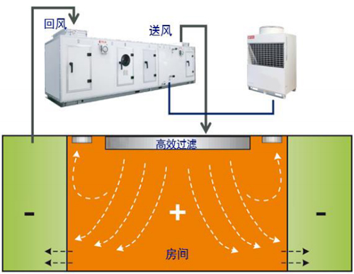 潔凈室通過使用潔凈過濾器,采用層流(單向流)或湍流(亂流,非單向流)氣流原理,來控制空氣中的顆粒。潔凈室設(shè)計(jì)的關(guān)鍵是空氣引入(供給)和排出(排氣)的適當(dāng)位置。