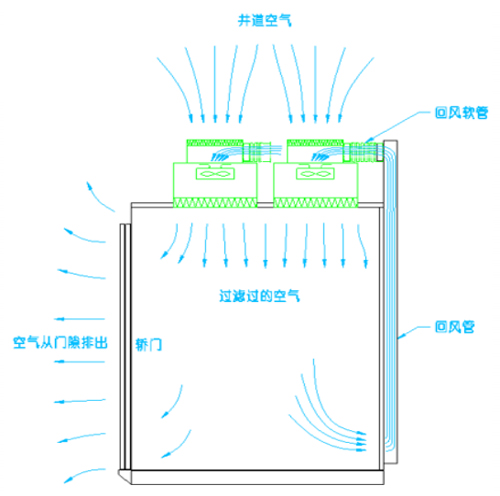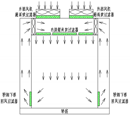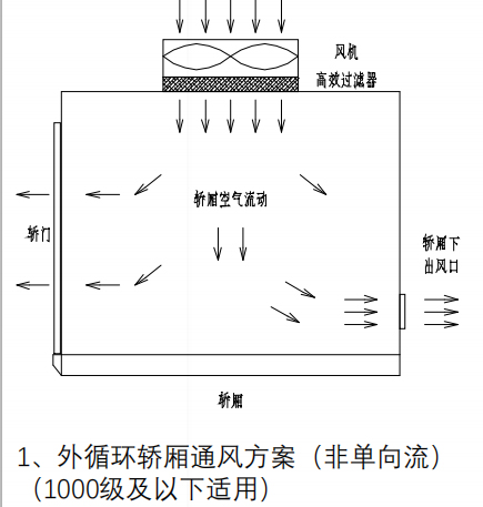 帶內(nèi)循環(huán)的轎廂通風(fēng)方案(單向流)適用于百級潔凈等級