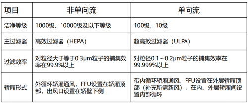 注: 1. 無回風(fēng),潔凈轎廂主要用于潔凈度等級等于或高于10000級的情況。2. 有回風(fēng),潔凈轎廂主要用于潔凈度等級等于或高于 1000級的情況